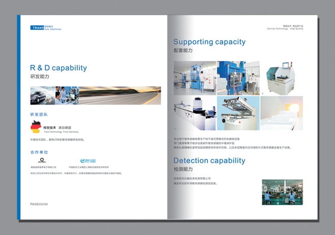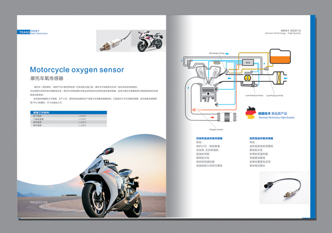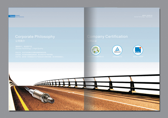 客戶名稱:傳世電子 行業(yè)類別:電子行業(yè) 項(xiàng)目分類:畫冊(cè)設(shè)計(jì)|企業(yè)畫冊(cè)設(shè)計(jì)|產(chǎn)品畫冊(cè)設(shè)計(jì)|宣傳冊(cè)設(shè)計(jì) 項(xiàng)目介紹: 傳世汽車電子位于江蘇省蘇州工業(yè)園區(qū),是一家獨(dú)立運(yùn)營的民營企業(yè)。我們專業(yè)從事汽車與摩托車氧傳感器研發(fā)、生產(chǎn)與銷售。傳世擁有十多年的氧傳感器研發(fā)與生產(chǎn)經(jīng)驗(yàn)。我們不僅生產(chǎn)傳統(tǒng)型種類齊全的氧傳感器,同時(shí)還開發(fā)新型傳感器:如片式傳感器,迷你型傳感器等等。我們的中德專業(yè)團(tuán)隊(duì)多年來一直專注于車用氧傳感器領(lǐng)域,在市場(chǎng)營銷、進(jìn)出口物流、生產(chǎn)制造、質(zhì)量管理與外購等方面累積了豐富的經(jīng)驗(yàn)。除了我們的母語漢語之外,我們還能用德語、英語、法語進(jìn)行交流。