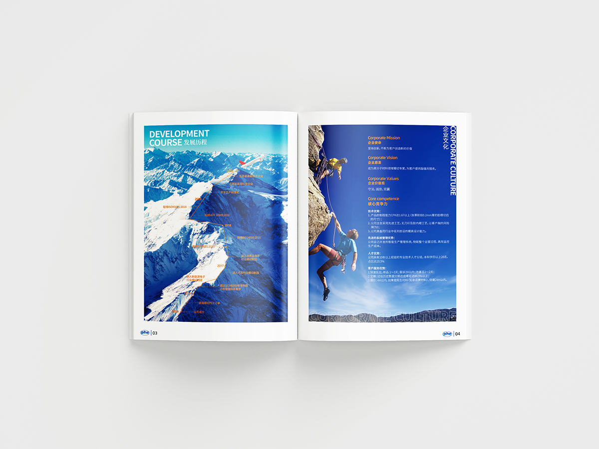作品的主色調(diào)選用科技藍(lán),給人以涼爽又不失穩(wěn)重的感覺,并且在視覺上有收縮的作用,通過顏色的搭配從封面到宣傳畫冊內(nèi)頁從一而終的貫徹,這就可以更加表現(xiàn)出宣傳冊的設(shè)計感以及現(xiàn)代感,充有助于向消費者傳達(dá)企業(yè)良好形象,增強(qiáng)企業(yè)的識別性。