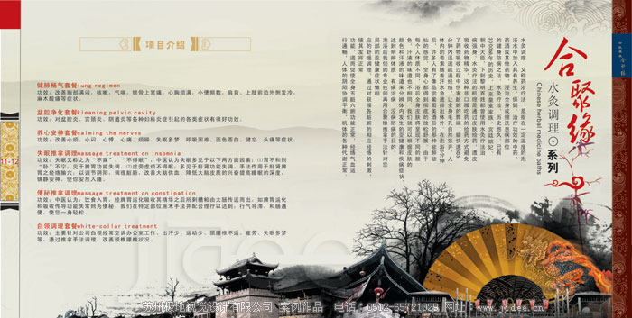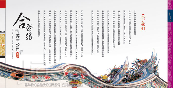 客戶名稱:蘇州合聚緣健康養(yǎng)生公司 行業(yè)類別:美容養(yǎng)生 項(xiàng)目分類:畫冊(cè)設(shè)計(jì)|企業(yè)畫冊(cè)設(shè)計(jì)|產(chǎn)品畫冊(cè)設(shè)計(jì)|宣傳冊(cè)設(shè)計(jì) 項(xiàng)目介紹: 蘇州合聚緣健康養(yǎng)生公司位于竹輝路201號(hào)恒潤(rùn)大廈二樓,營(yíng)業(yè)面積800多平米,于2012年8月正式開業(yè),是一家集傳統(tǒng)中醫(yī)推拿和養(yǎng)生調(diào)理手法為一體的專業(yè)中醫(yī)健康養(yǎng)生服務(wù)機(jī)構(gòu)。公司“以人為本”的現(xiàn)代化管理模式吸引了20多位針灸推拿專業(yè)的優(yōu)秀熟練技師,他們有著多年治療保健的臨床經(jīng)驗(yàn)…
