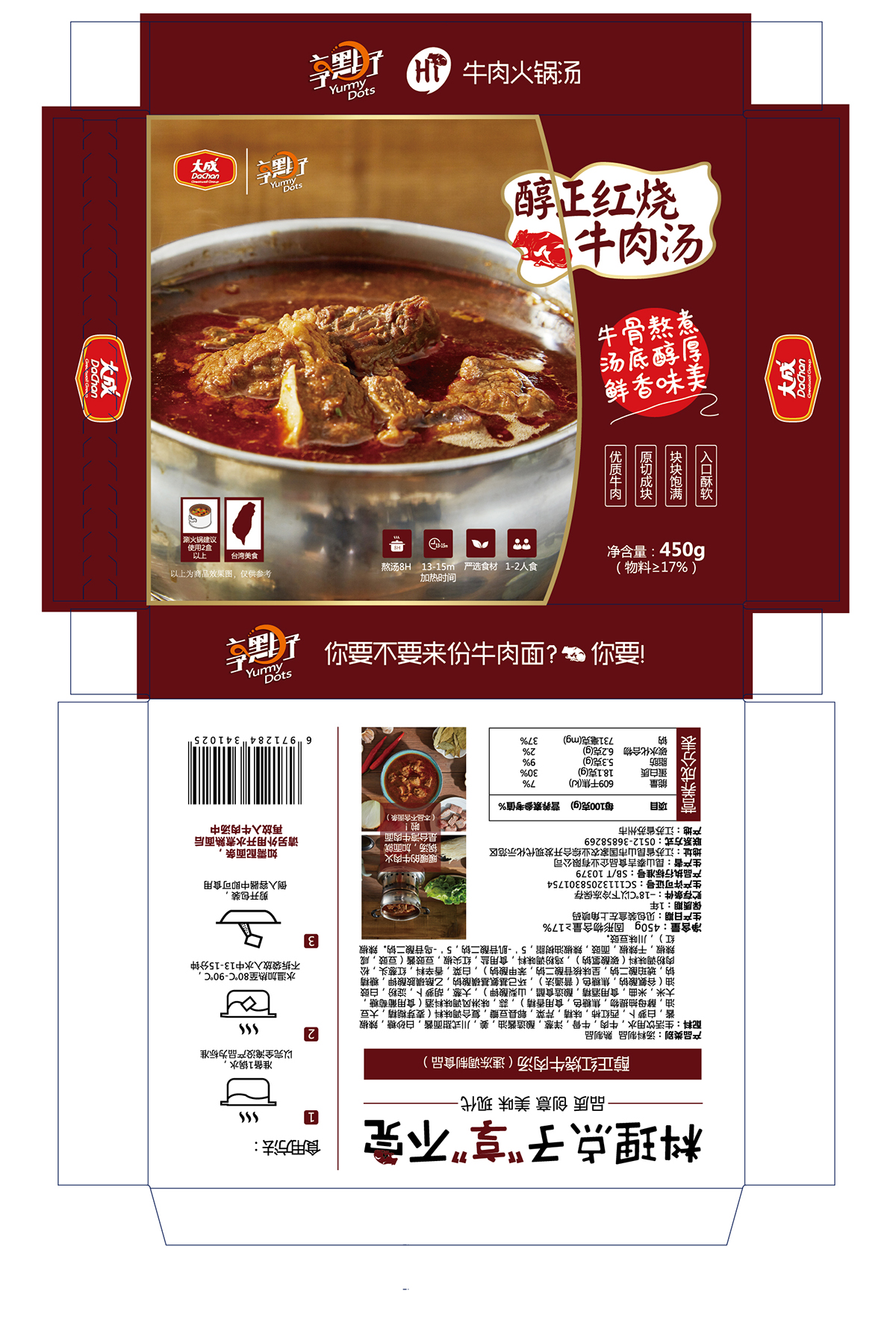 醇正紅燒牛肉湯飯食品包裝盒設(shè)計(jì)、包裝袋設(shè)計(jì)-極地品牌設(shè)計(jì)公司出品