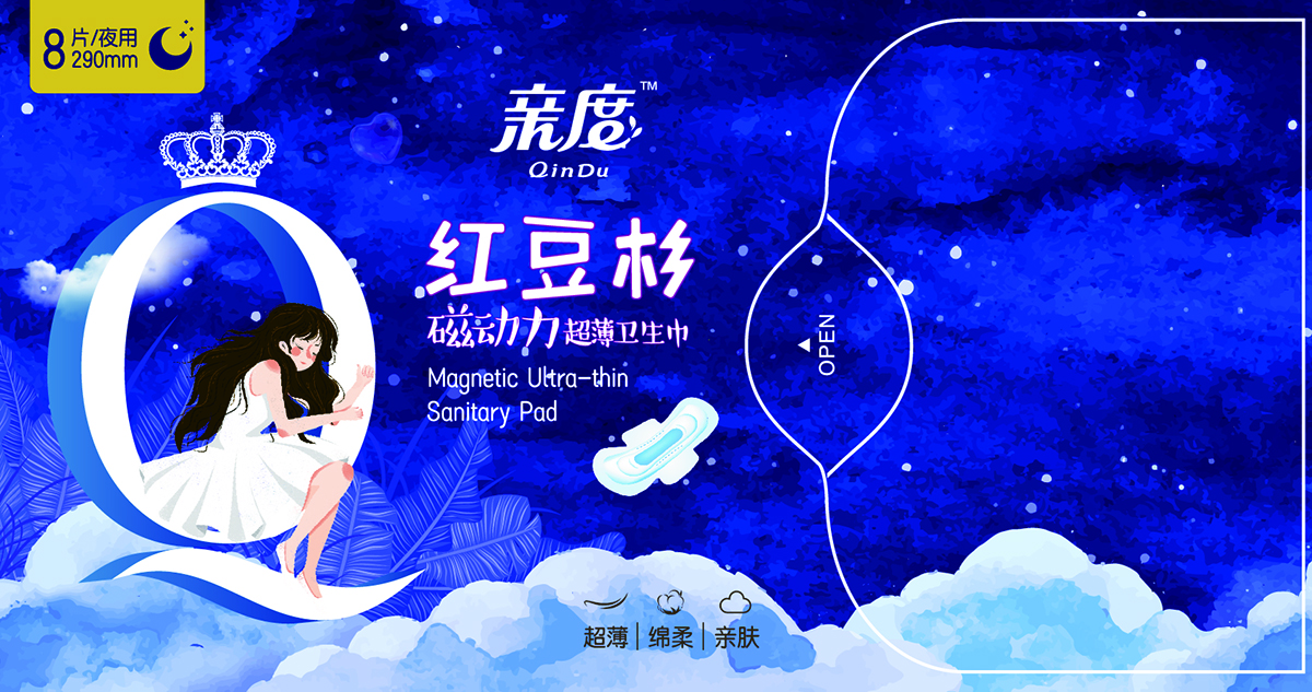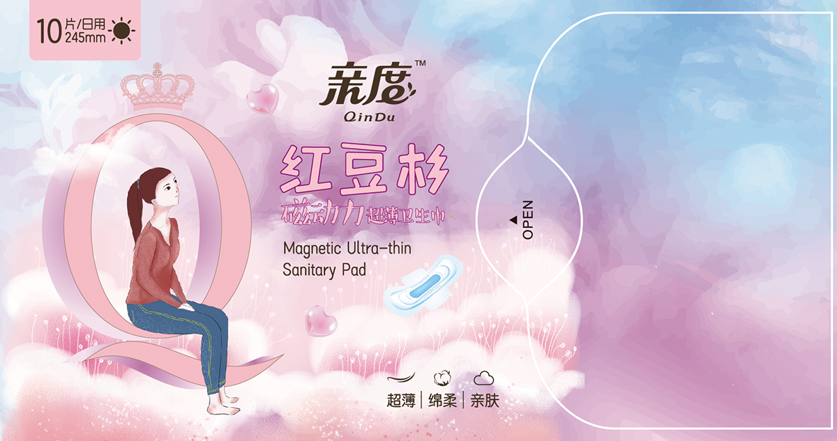 項目背景:親度紅豆杉磁動力超薄衛(wèi)生巾,以每少女的卡通形象為主題的設(shè)計風(fēng)格和個性,在與同類競品競爭中脫穎而出。對于中國女孩來說,衛(wèi)生巾仍然是一個尷尬而私密的話題。因此,在衛(wèi)生護墊市場上,“口袋大小的包裝”的概念應(yīng)運而生,并因其時尚的外觀和超輕便的設(shè)計而廣受歡迎。特點:超薄 綿柔 親膚