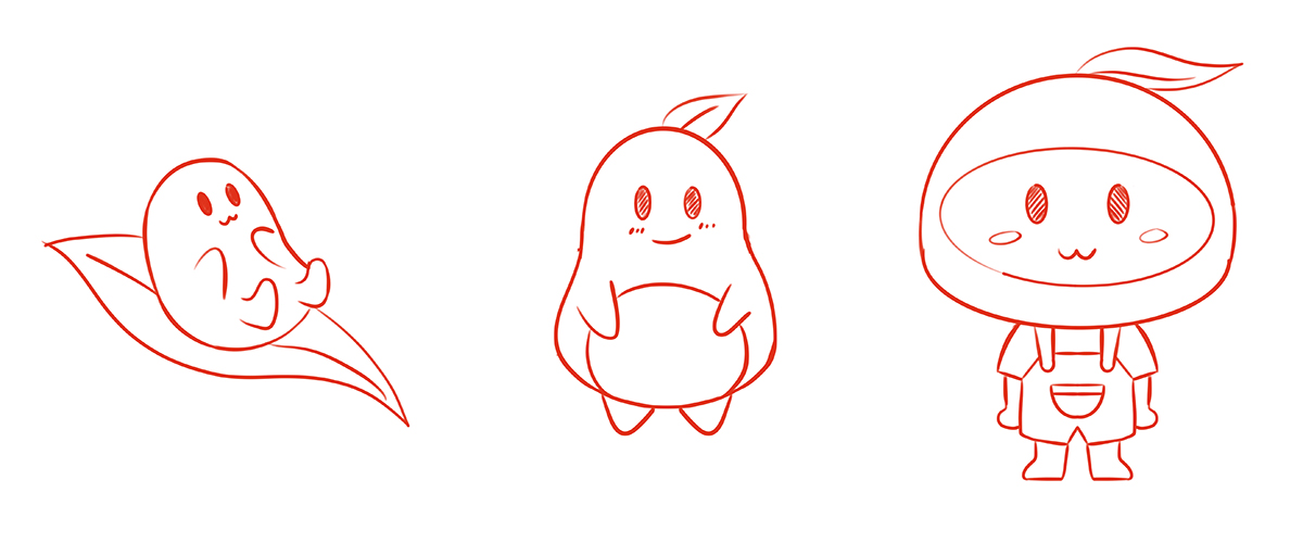 根據(jù)小能豆品牌IP設(shè)計(jì)的行業(yè)特點(diǎn),我們?yōu)樾∧芏巩嬃丝ㄍㄈ宋镌O(shè)計(jì)草圖,客戶選擇了第二個(gè)和第三個(gè)草圖深化設(shè)計(jì)