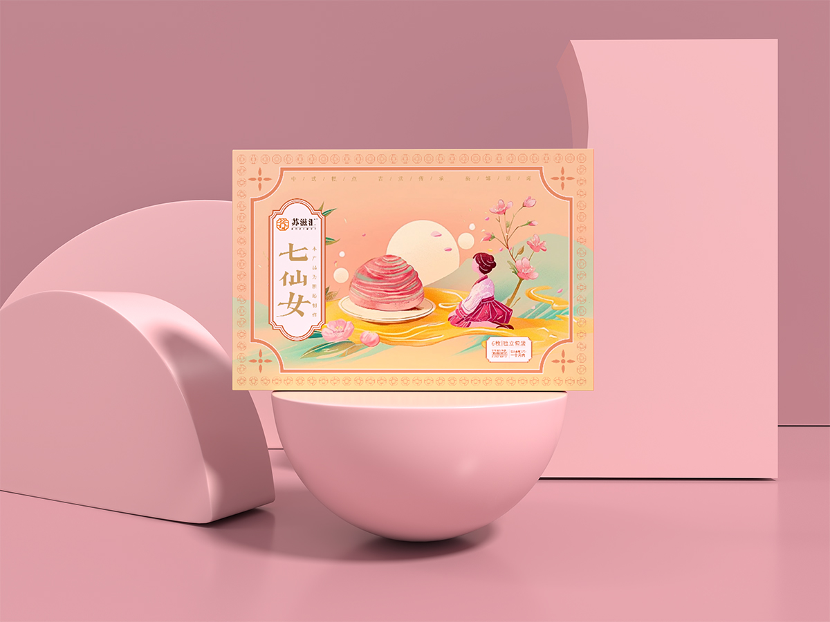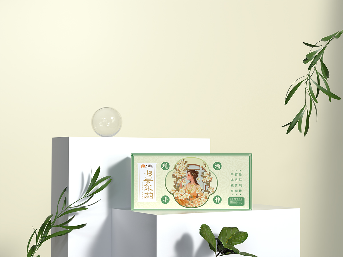 極地視覺為蘇滋味打造四款包裝系列分別為七仙女糕點包裝設計系列、七尋茉莉糕點包裝設計系列、荷塘月色糕點包裝設計系列、桃酥系列包裝設計等。