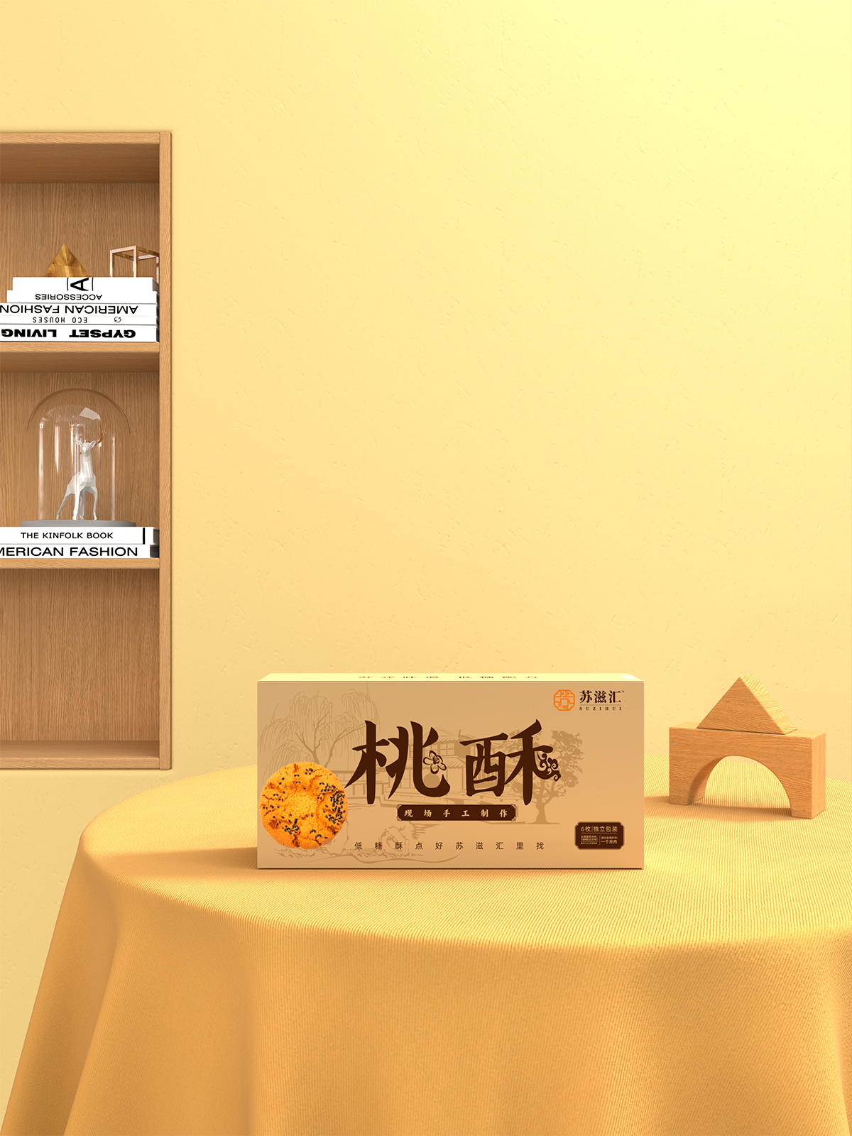 桃酥包裝設計系列,桃酥禮盒升級的關鍵在于.將品牌和產品內涵清晰可視化,讓桃酥成為詹記精神視覺文化符號。以蘇式文化深化品牌內涵,是本項目的策略關鍵。設計師重新梳理蘇滋味品牌文化和桃酥產品文化,借鑒蘇式工藝,在桃酥造型中進行刻畫,象征著桃酥獨到匠香的背后承載了詹記一路走來的風風雨雨和堅守的蘇商精神。以干、酥、脆而聞名,一口酥到掉渣,濃郁麥香混合著芝麻香,讓你感受到入口即化的美味。