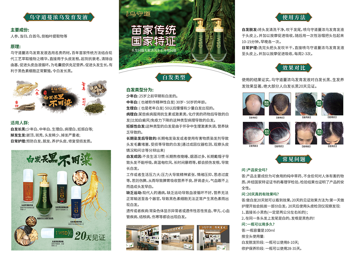 養(yǎng)發(fā)護發(fā)美容三折頁設(shè)計-烏守道養(yǎng)發(fā)生發(fā) | 蘇州包裝設(shè)計 VI設(shè)計-極地視覺具有國際視覺的優(yōu)質(zhì)品牌設(shè)計公司