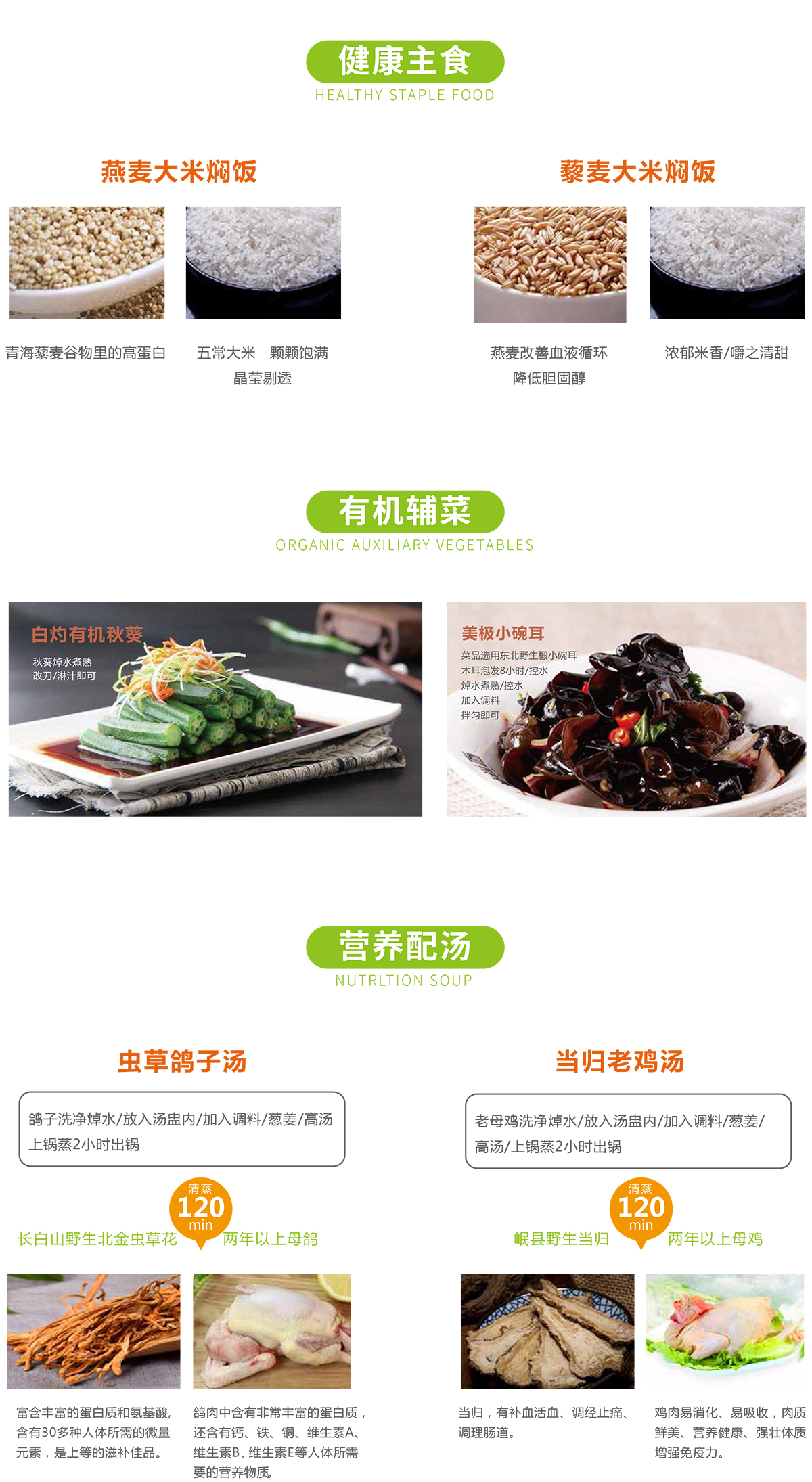 在食材臻選上堅(jiān)持四大原則“優(yōu)”、“鮮”、“活”、“美”,主食五常大米配比青海藜麥、燕麥;主菜自制八珍柱侯醬烹制精選牛爽腩、豆豉烹制精選仔排 、鮮活多寶魚、青蝦; 配湯長白山野生北金蟲花草精燉兩年以上生母鴿,岷縣野生當(dāng)歸精燉兩年以上生土雞; 輔菜東北野生椴木小碗耳、 有機(jī)秋葵。菜品烹飪精選伯爵特級初榨橄欖油,每道菜3克油,保證營養(yǎng)也兼顧康。專注餐飲品牌全案設(shè)計,50+餐飲品牌全案設(shè)計,我們是一家聚焦餐飲領(lǐng)域的品牌設(shè)計公司。