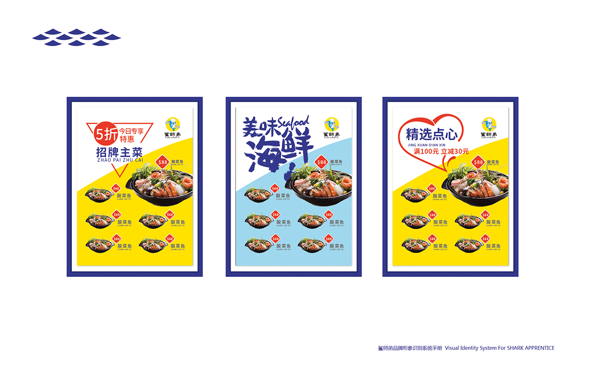 生鮮餐飲LOGO設(shè)計,鯊師哥VI設(shè)計菜單-極地視覺