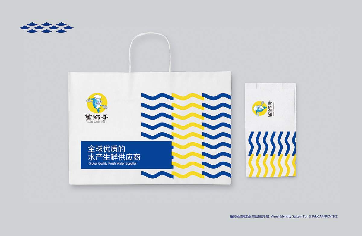 生鮮餐飲LOGO設(shè)計,鯊師哥VI設(shè)計手提袋-極地視覺