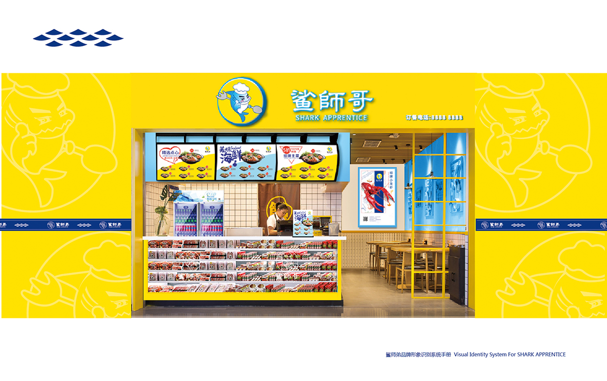 生鮮餐飲LOGO設(shè)計,鯊師哥VI設(shè)計門頭形象-極地視覺