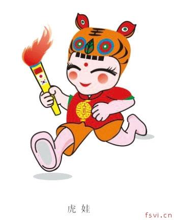 吉祥物“虎娃”是一位身穿中國(guó)傳統(tǒng)服飾的小姑娘手持火炬飛奔而來(lái),祝賀本屆運(yùn)動(dòng)會(huì)的成功舉辦。吉祥物采用布老虎、唐裝等造型紋樣,極具中國(guó)傳統(tǒng)文化特色,布老虎形象也是濰坊民間美術(shù)文化的代表之一;⑼夼懿阶藨B(tài)協(xié)調(diào)而充滿(mǎn)動(dòng)感,充分顯示了運(yùn)動(dòng)的魅力;彎彎的眼睛、紅紅的嘴唇和臉龐的胭脂形成一張?zhí)鹈赖男δ槪灿朔劫e客。吉祥物虎娃形象喜慶、色彩熱烈、動(dòng)態(tài)和諧,充分展示了濰坊人民迎接中日韓青少年運(yùn)動(dòng)員的熱情。