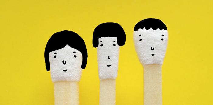 小木偶結(jié)合創(chuàng)意設(shè)計也會為老產(chǎn)品帶來新的生命力,這是Kumi Hirasaka 在1994年借用日本的傳統(tǒng)木娃娃造型設(shè)計的火柴包裝設(shè)計部分,后來將木偶的制作擴展到了小雞,小豬,小貓和其他動物類型上