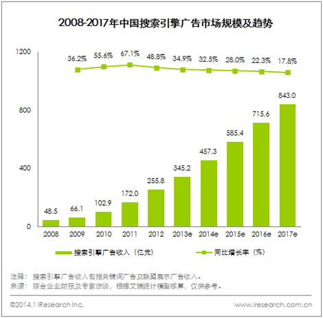 國內(nèi)網(wǎng)絡(luò)廣告市場規(guī)模在突破千億大關(guān)之后,隨著市場的成熟度不斷提高,將在未來幾年放緩增速,平穩(wěn)發(fā)展。