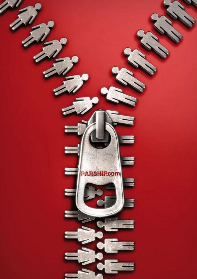 這個(gè)廣告是針對(duì)在線相親服務(wù)網(wǎng)站——Parship.com設(shè)計(jì)的一個(gè)廣告,它描繪了男人和女人被拉鏈拉在一起的符號(hào)。 在創(chuàng)作這個(gè)廣告的過(guò)程中,設(shè)計(jì)師們會(huì)頭腦風(fēng)暴那些能夠代表男性和女性(通衛(wèi)生間符號(hào))的符號(hào)和視覺(jué),包括如何把兩個(gè)符號(hào)拉在一起的想法(拉鏈)。