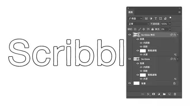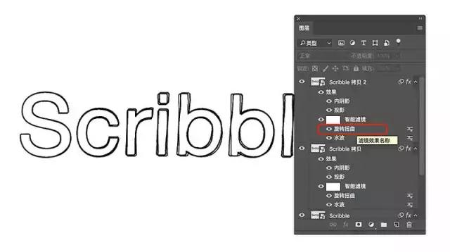 希望你喜歡跟隨這個簡單、有趣的教程!你可以通過實驗“水波”和“旋轉(zhuǎn)扭曲”濾鏡的不同值來調(diào)整結(jié)果。你也可以在Illustrator中使用許多可用的選項來調(diào)整涂鴉線條效果。不要忘記,如果要更改文本,你可以編輯智能對象,而無需重做任何步驟。