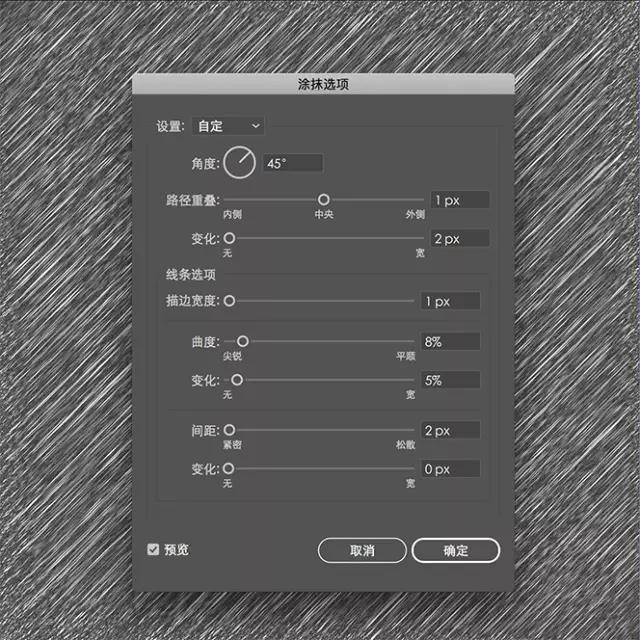 進行效果>風(fēng)格化>涂抹。使用下面截圖中的參數(shù)設(shè)置,創(chuàng)建一個合適的涂鴉效果。