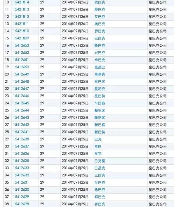 最變態(tài)的絕對(duì)是星巴克公司了,把可能用到的名字都給注冊(cè)了一遍,有錢(qián)任性!