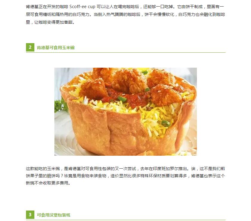 引言:這幾年因為環(huán)境污染太嚴(yán)重,生產(chǎn)制造商們都紛紛重視起了環(huán)保問題,可食用包裝已經(jīng)成為全球食品包裝行業(yè)的大事,也是未來的一大趨勢。