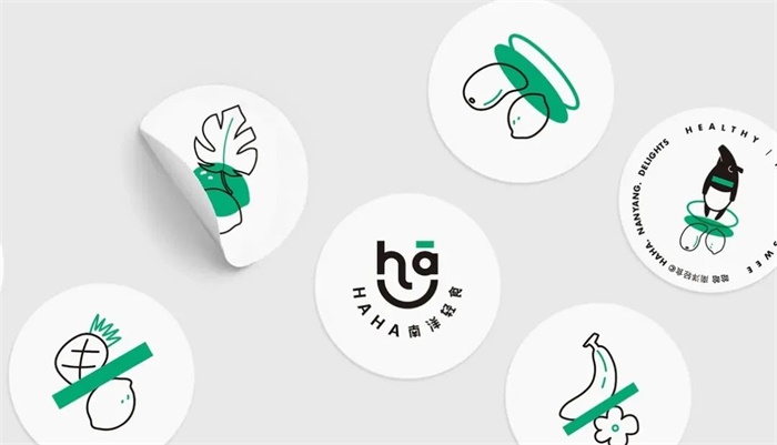 南洋輕食LOGO設(shè)計以字體線條為主,通過加粗和顏色搭配顯得清新簡單,色調(diào)上以白色和綠色為主,黑色線條勾勒出食材和IP的形象,綠色作為恰到好處的點(diǎn)綴,IP形象像借鑒了南洋特色生物馬來貘,乖巧又無措地站立著萌點(diǎn)十足。