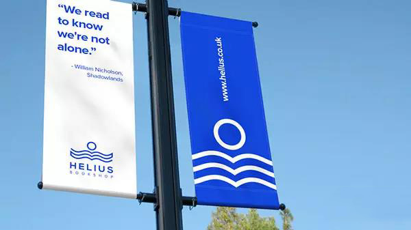 Helius是一個(gè)新建立的在線商店,主要以銷售書(shū)本為主,公司的主要目標(biāo)是提供最優(yōu)質(zhì)的服務(wù)給客戶。在希臘Helius是指太陽(yáng)之神的意思,因此Helius品牌VI設(shè)計(jì)就是一個(gè)從書(shū)中冉冉升起的太陽(yáng)和開(kāi)放的書(shū)單標(biāo)識(shí)符號(hào)。整體VI采用藍(lán)色調(diào),藍(lán)色是海洋的顏色,不僅高端大氣,而且寓意在知識(shí)的海洋遨游!