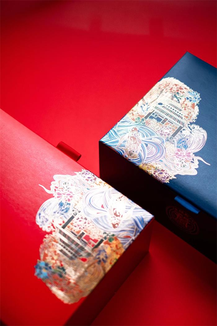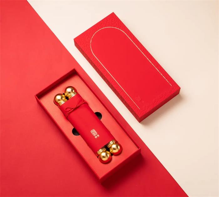 這款御喜茶以國(guó)潮風(fēng)為主視覺(jué),靈感來(lái)源于帝王所用物--“御”的敬稱以及圣旨的外觀概念,旨在從深厚的文化底蘊(yùn)中挖掘經(jīng)典元素,因而紅色包裝的圣旨外觀完成了茶葉的全新形象,另外同色的紅細(xì)帶,固定“圣旨”的同時(shí)兼顧了美觀性。有意思的是兩端的金屬鏤空軸柄設(shè)計(jì),軸端處可扭開(kāi)半圓,實(shí)現(xiàn)擴(kuò)容的作用,進(jìn)而能夠合理利用空間。展開(kāi)后的“圣旨”畫(huà)面描繪了宮廷歲月靜好的情景,底襯賦以《奉茶》詩(shī)文,拉近與消費(fèi)者的距離。金色外盒則以線條勾勒了宏偉的宮門(mén)形象,兩側(cè)繪以祥云深壓紋,一繁一簡(jiǎn),強(qiáng)化視覺(jué)張力。