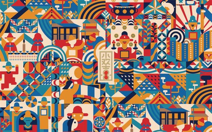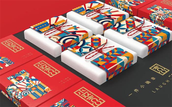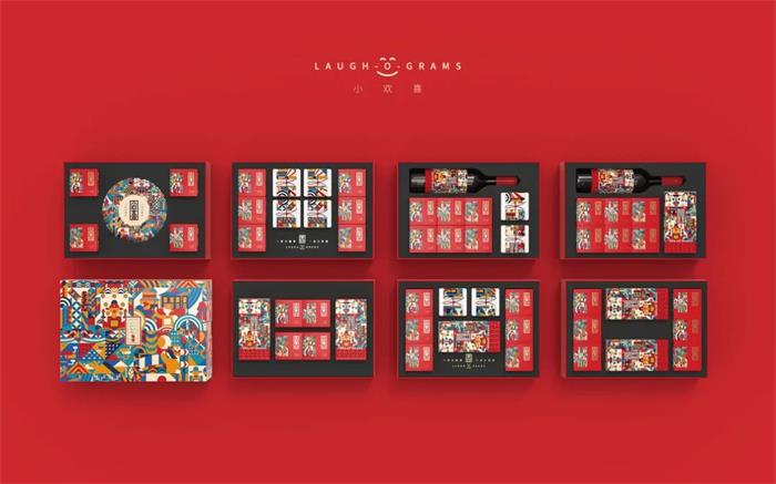 這款組合型茶葉禮盒套裝首先從產(chǎn)品使用情景推出文化再形成產(chǎn)品,并從產(chǎn)品本身出發(fā),以中國(guó)喜文化為基礎(chǔ)依據(jù)形成“小歡喜”概念,賦予產(chǎn)品包裝一定的主題意義,不同于以往的插畫(huà)設(shè)計(jì)。這款禮盒以簡(jiǎn)單的幾何圖形拼接而成,錯(cuò)落有序的排列方式搭配高飽和度的斑斕色彩,營(yíng)造了一種同慶歡喜的氛圍。而拼接成的畫(huà)面,呈現(xiàn)出“小歡喜”的拼音首字母形式,并在字母中加入了金榜題名、洞房花燭夜等人生之“八喜”的經(jīng)典場(chǎng)景,扁平化的描繪手法反而增添畫(huà)面的立體感。內(nèi)盒的獨(dú)立茶葉包裝則要更顯簡(jiǎn)約,紅色外盒搭配半邊插畫(huà)內(nèi)容,側(cè)標(biāo)的“小歡喜”字樣經(jīng)過(guò)藝術(shù)化處理,既能有效展現(xiàn)產(chǎn)品信息,也很好地平衡了整體視覺(jué)效果。白色盒裝則以可拆卸標(biāo)簽貼為主視覺(jué),紅色繩結(jié)的固定及裝飾作用豐富了整體包裝層次,進(jìn)一步增強(qiáng)與消費(fèi)者間的情感連接。
