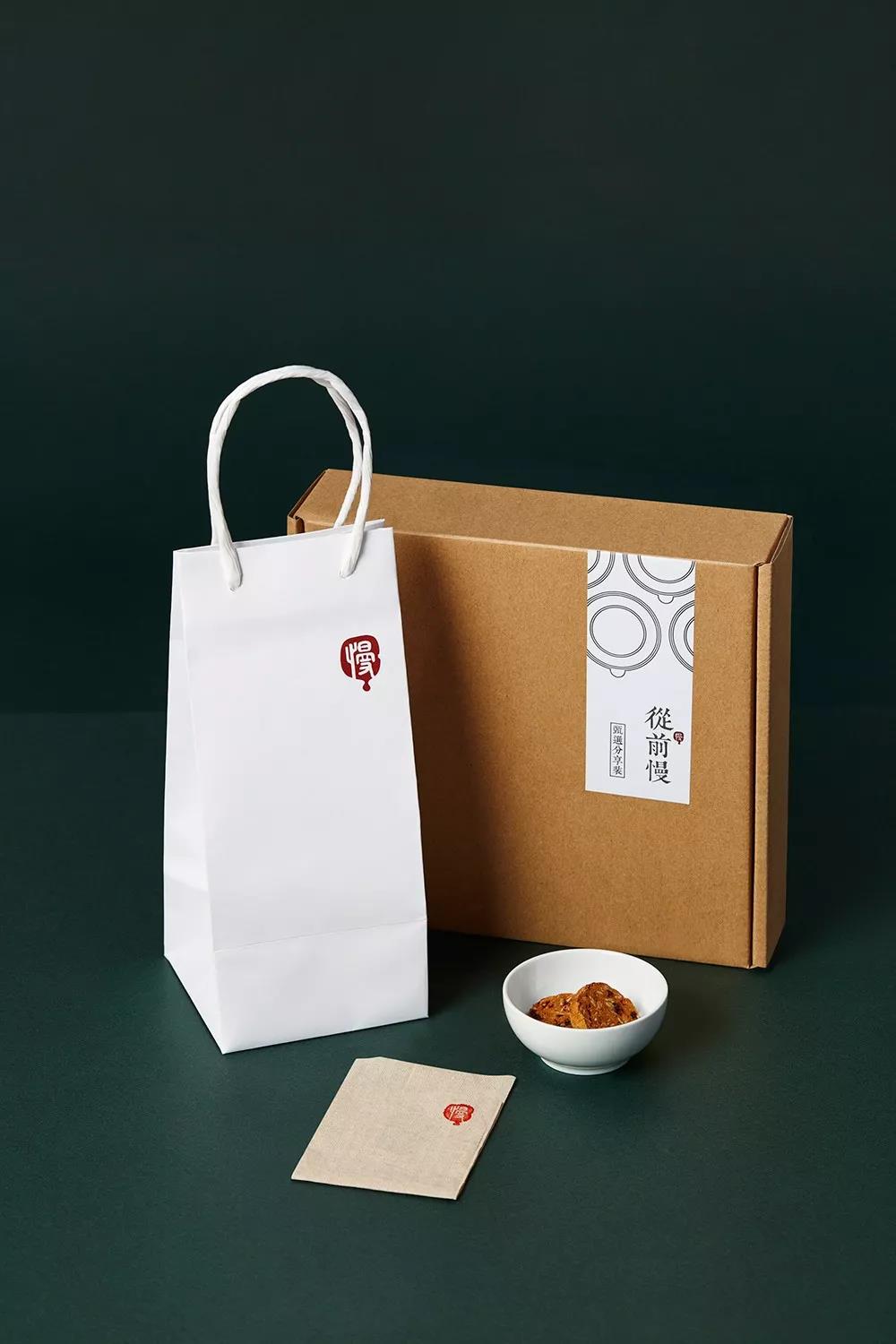 “從前慢”是一家滋補甜品店,主打傳統(tǒng)銀耳羹,LOGO選用極具文藝氣息的康熙字典體,旁邊一個小小的纂體“慢”字印章,輔助圖形也在“慢”字上進行延展。整套VI設計以黑白為主色調,無多余綴飾,風格簡潔婉約,為了配合文藝國風的調性,除菜單外的文字全部采用豎版排版。