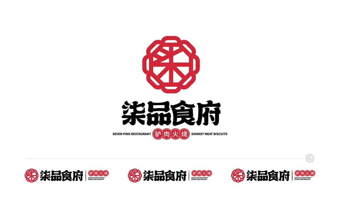 驢肉火燒是華北地區(qū)極為流行的傳統(tǒng)小吃,華北地區(qū)的大街小巷隨處可見驢肉火燒的店鋪,驢肉也蘊(yùn)含著極高的營養(yǎng)價(jià)值。柒品食府的LOGO圖形提取了花窗的元素,結(jié)合名稱的首字“柒”抽象而成,是比較古典的感覺,注重打造品牌的符號文化。而文字的筆劃結(jié)束處的上揚(yáng)或下鉤,令字形呈現(xiàn)出比較輕俏的感覺,圖形與文字,更像是傳統(tǒng)與現(xiàn)代的撞擊。LOGO有著不同的組合樣式,橫版組合樣式重在突出符號和名稱,而豎版組合樣式則側(cè)重展現(xiàn)名稱和品類,圖形符號作為點(diǎn)綴,使LOGO的整體呈現(xiàn)更加和諧。