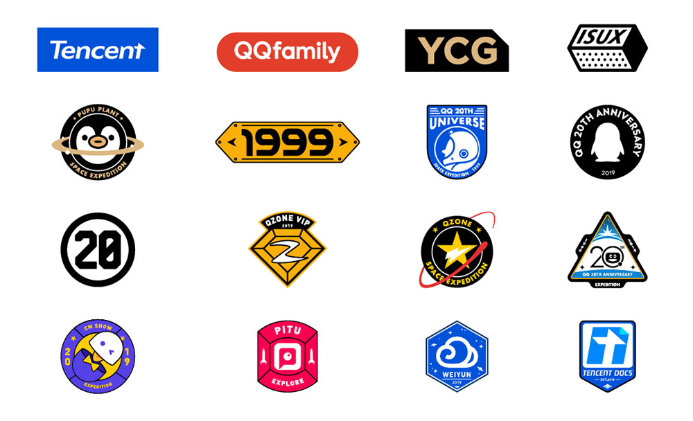 為了能夠和“宇宙探索”這風(fēng)格緊密貼合,設(shè)計團隊還設(shè)計了專屬徽章,徽章設(shè)計沿用了太空的概念,結(jié)合星球,星空,宇航員等科幻元素。簡約的幾何形狀和大膽的配色貼合“QQ更好玩”的年輕潮流氣息。
