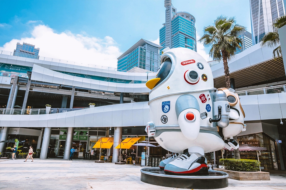 配合QQ20周年慶,設(shè)計團隊給8m高的巨型QQ模型搭配上了貼紙設(shè)計,以slogan “QQ更好玩” 為設(shè)計的出發(fā)點,希望把有趣好玩的態(tài)度注入各個品牌中,為品牌logo嚴肅的視覺帶來玩味感和潮流感。
