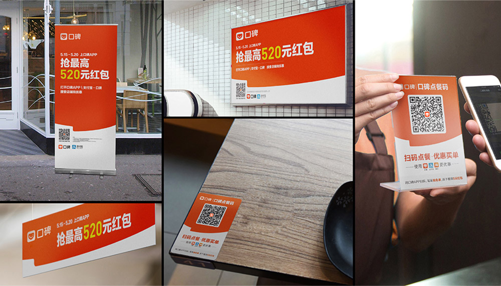 另外,在此次升級中,設(shè)計師還為口碑重新設(shè)計了輔助性的圖形元素,以幫助口碑的各類物料提升被感知、識別、記憶的可能。