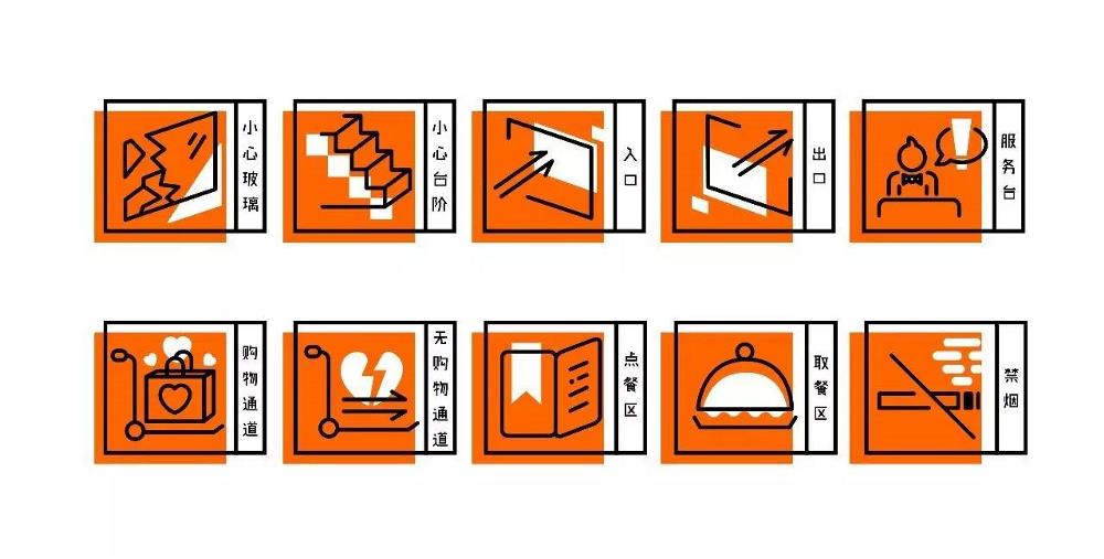 滲透化:店內(nèi)導(dǎo)視系統(tǒng)以輕量的線(xiàn)條和幾何色塊進(jìn)行組合設(shè)計(jì),通過(guò)精簡(jiǎn)的圖形語(yǔ)言有傳遞產(chǎn)品信息。