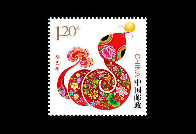據(jù)介紹,《癸巳年》蛇年生肖郵票設(shè)計(jì)者為清華大學(xué)美術(shù)學(xué)院教授、博士生導(dǎo)師、2011年兔年生肖郵票設(shè)計(jì)者吳冠英。他表示,生肖郵票作為一種大眾的藝術(shù),需要被人普遍接受,所以在設(shè)計(jì)中加入了很多民間傳說(shuō)等中國(guó)傳統(tǒng)語(yǔ)言。“蛇身用的是紅色,因?yàn)楣糯v赤蛇是大吉的意思,牡丹頭飾表示富貴,蛇身上代表四季的桃花、荷花、菊花、梅花,表達(dá)反復(fù)、長(zhǎng)久的意思!睂(duì)于蛇票上最為與眾不同的珠子,吳冠英解釋說(shuō),這顆珠子源于晉代小說(shuō)《搜神記》里蛇銜明珠以報(bào)恩的故事。