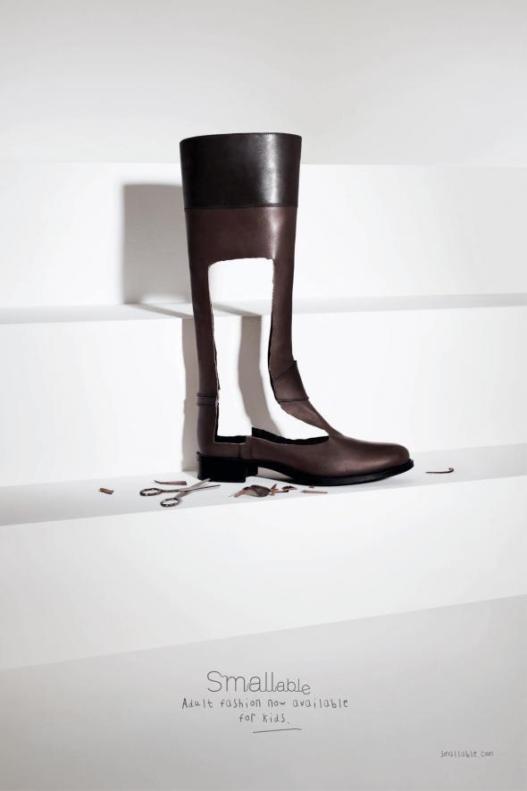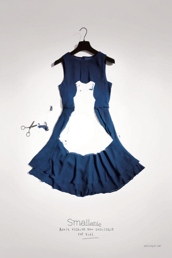 法國在線品牌Smallable,專門為孩子們提供超時尚的在線時裝及設(shè)計概念。這種直接在大人衣服上挖洞的形式,相當(dāng)直觀的表現(xiàn)了Idea:一樣時髦,只是Size不同。另外,裁剪的碎屑隨意的散落一旁,更體現(xiàn)了定制、量體裁衣的核心,不可謂不精妙~ 廣告