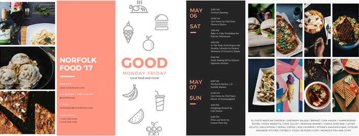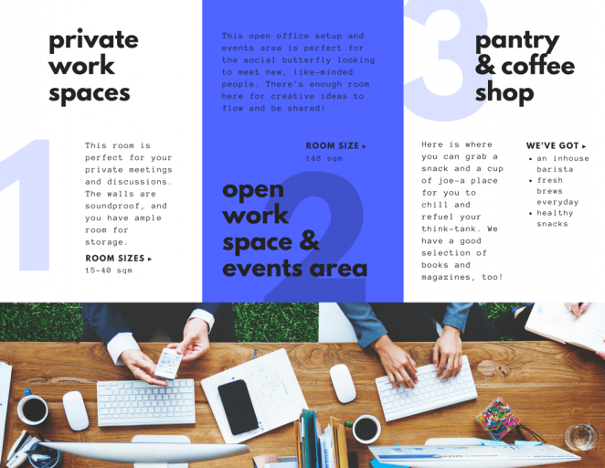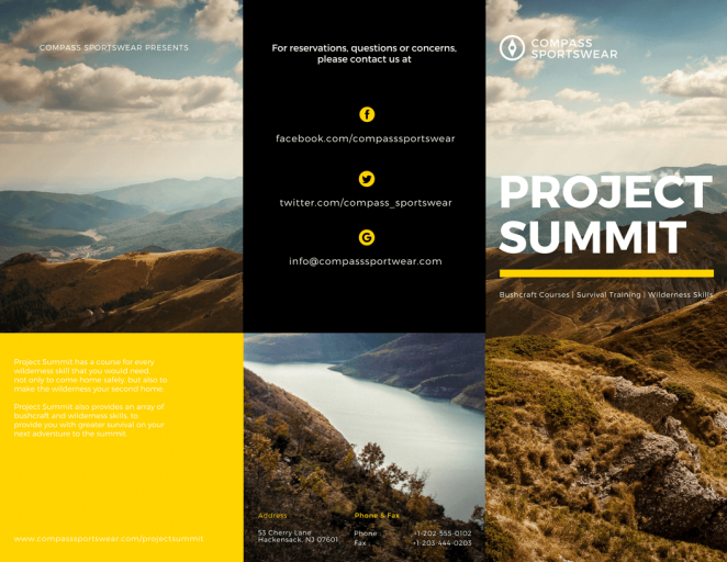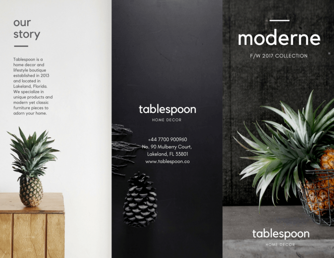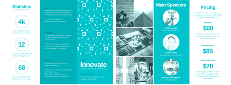 不想讓你的三折頁受到忽視?設(shè)計時使用上明亮的色彩襯托你的展品是個不錯的方法。如果是用你自己的品牌色進(jìn)行配色,就使用最明亮的那個配色吧。