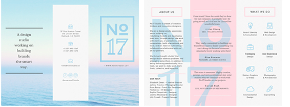 以下這些設(shè)計可以證你的宣傳冊不必長達(dá)多頁,它可以僅僅是張雙面打印的三折頁。