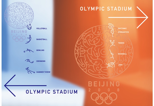 設計理念其實非常中國風,以中國的象形文字為主,各個組成部分是運動選手們的圖形解釋,表達了多種競技形式的結合,細節(jié)處理極其強大。
