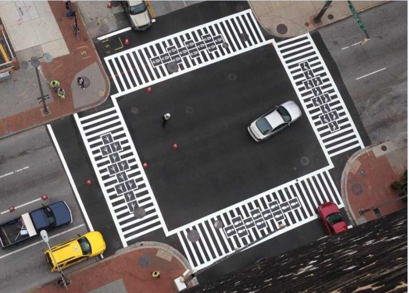 行人們在路上穿梭,一定會看到的就是黑白相間的枕木紋斑馬線了,在美國巴爾的摩,為了增加公共藝術(shù)的能見度,便邀請了幾位藝術(shù)家進(jìn)行行人斑馬線的藝術(shù)創(chuàng)作,讓人們在忙碌生活中低頭疾行的同時,也能在腳下感到一絲不一樣的驚喜創(chuàng)意和屬于城市的藝術(shù)觀點。