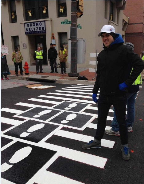 在美國巴爾的摩,為了增加公共藝術(shù)的能見度,便邀請了幾位藝術(shù)家進(jìn)行行人斑馬線的藝術(shù)創(chuàng)作,讓人們在忙碌生活中低頭疾行的同時,也能在腳下感到一絲不一樣的驚喜創(chuàng)意和屬于城市的藝術(shù)