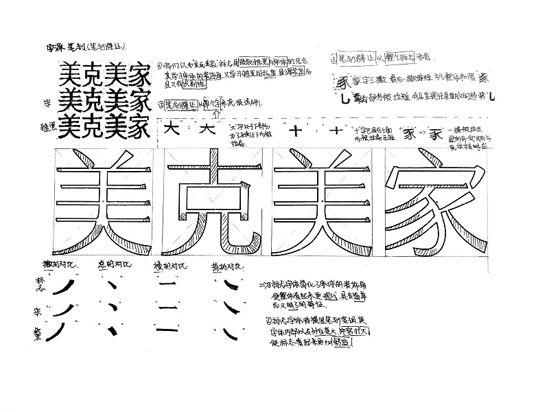 字型結(jié)構(gòu)-美克美家標(biāo)志是微軟雅黑與宋體的結(jié)合,既有等線體的現(xiàn)代、莊重感又有宋體的雅致、大氣。是一款難得的標(biāo)準(zhǔn)字體。宋體的裝飾角加上雅黑的弧度,顯得莊重而且又有很強(qiáng)的識(shí)別性。結(jié)合兩種字體的特點(diǎn)組合新的一款字體是一種常見(jiàn)而且實(shí)用的造字方法,例如,楷體與宋體的結(jié)合,字研所將會(huì)在以后進(jìn)行分析……