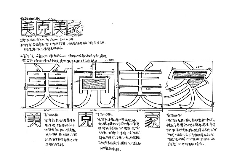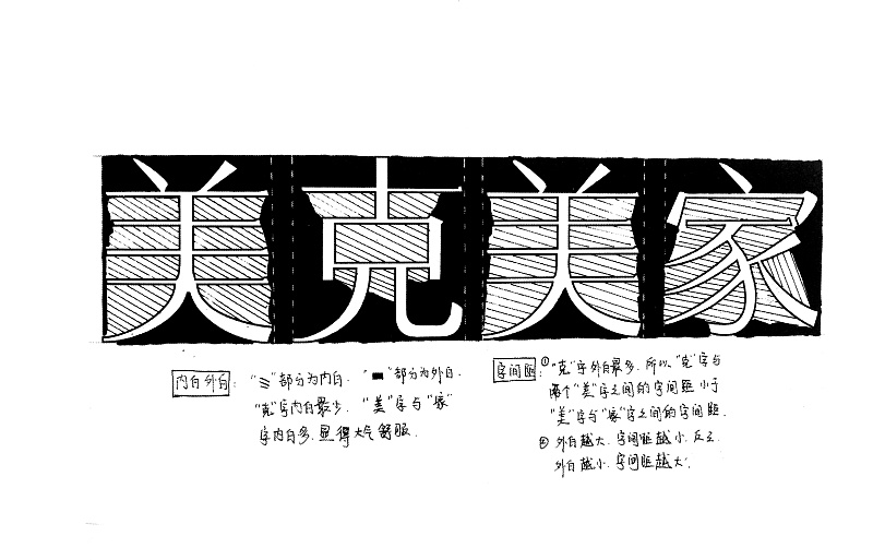 布白-布白均勻決定著一個(gè)字的品相和氣質(zhì),中國(guó)書法講究計(jì)白當(dāng)黑。外白與內(nèi)白在的大小影響著字與字之間的距離,克字外白最大,所以它與相鄰的美字之間的距離要小于美字與家字之間的距離。尤其在西文字體中,字母之間的距離不是均等的就是這個(gè)道理。