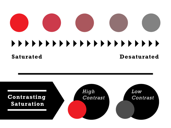 色彩強度也叫作色彩飽和度。當顏色達到最純最亮的時候,我們就說這種顏色100%飽和,而如果一個顏色越灰它就越不飽和。亮色和暗色無論是單獨還是搭配使用都能有效地在設計中形成高低對比。亮色總能吸引人的注意,尤其是當它以黑色為背景的時候,因此你可以用亮色來強調(diào)設計中的重要部分。