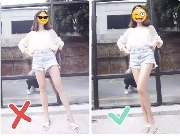 拍照角度很重要,但拍照姿勢也同樣重要。下面教大家?guī)追N簡單易學的拍大長腿姿勢: