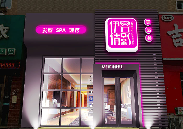 門頭設(shè)計要隨著不同時期人們的審美觀念而有所變動,相應(yīng)地改變材料、造型形式以及流行色彩搭配,以跟上時代潮流。
