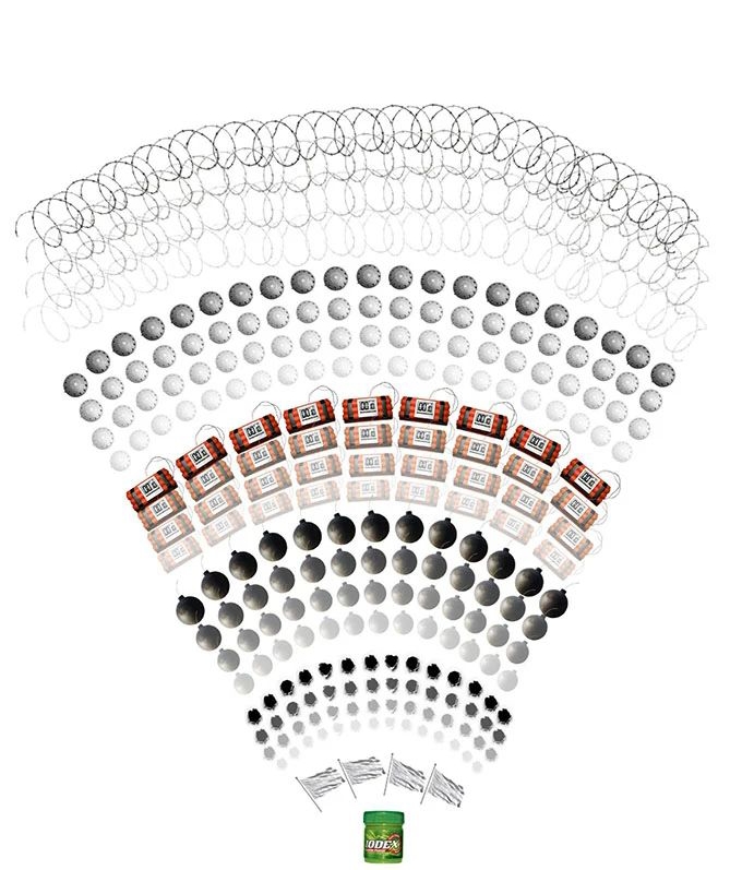 某個(gè)元素從一點(diǎn)向四周進(jìn)行擴(kuò)散運(yùn)動(dòng),以此在空間上形成放射的效果。每組放射線條都有共同的軸心,常常將該軸心視為畫面的視覺重心,并將代表主題信息的要素?cái)[放在該位置。除此之外,放射狀線條還能給人帶來強(qiáng)烈的視覺張力,并使畫面整體的注目度得到大大提升。
