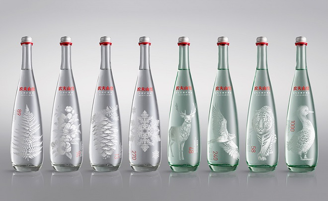 比如橫掃2015年眾多獎(jiǎng)項(xiàng)、斬獲包裝設(shè)計(jì)類(lèi)最高獎(jiǎng)——FAB最佳作品獎(jiǎng)的高端水系列瓶裝設(shè)計(jì)。瓶身的設(shè)計(jì)充滿傳統(tǒng)中國(guó)藝術(shù)色彩,選取了長(zhǎng)白山的典型天氣和植物以及長(zhǎng)白山四種典型的動(dòng)物,體現(xiàn)了其水源地的自然生態(tài)。