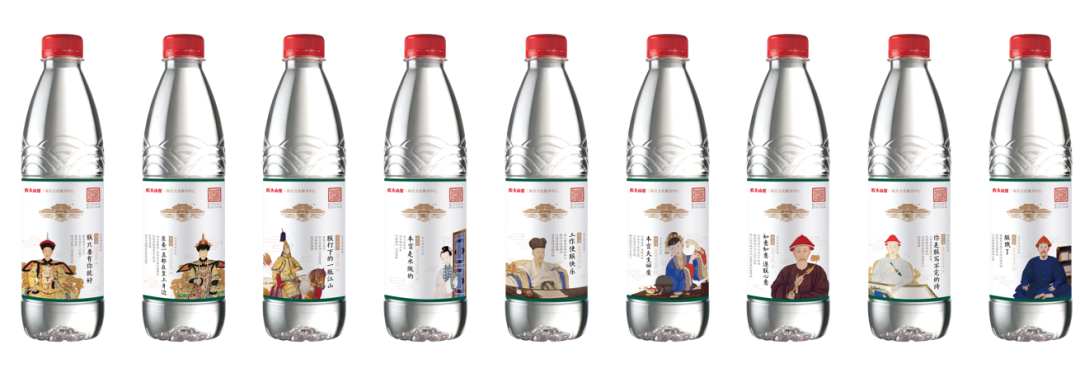 比如農(nóng)夫山泉攜手故宮文化服務(wù)中心聯(lián)合跨界合作,推出9款限量版“農(nóng)夫山泉故宮瓶”。以瓶身為載體,用康雍乾三代帝王,以及后妃們的人物畫(huà)像為設(shè)計(jì)主體,結(jié)合畫(huà)面人物性格,配以?shī)蕵?lè)社交的文案,利用宮廷情節(jié)作為創(chuàng)意點(diǎn)來(lái)推廣產(chǎn)品。