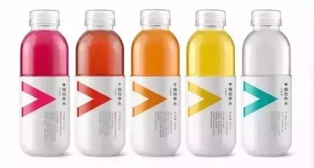 還有后來(lái)改版的維他命水系列,用“V”作為視覺(jué)核心,也讓人映像深刻
