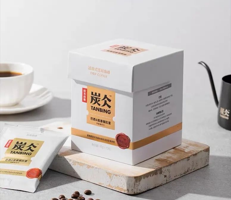 還有炭仌(bing)掛耳咖啡包裝設(shè)計(jì)也非常的高大上,以打造“0.01平方米咖啡館”為設(shè)計(jì)理念,分別設(shè)有小黑盒、小白盒和小棕盒三款包裝,類(lèi)似護(hù)膚品的取名以引起消費(fèi)者的新鮮感。