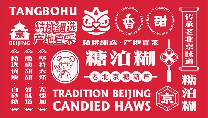 接下來分享的是一個老北京糖葫蘆品牌設(shè)計,以老北京的國潮基調(diào)進行設(shè)計,塑造了一個不一樣的糖葫蘆品牌。
