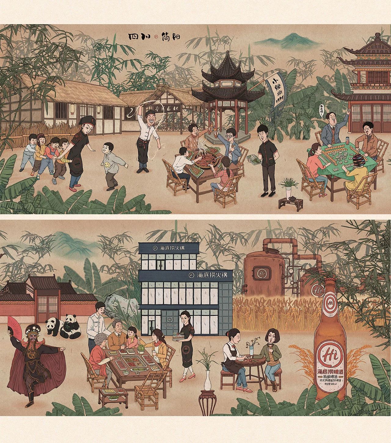 這個(gè)長(zhǎng)卷描繪了四川人民和海底撈